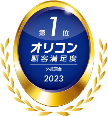2023年 オリコン顧客満足度®調査「外貨預金」において、全国67金融機関の中で4年連続総合1位を獲得しました。8項目の評価項目のうち「取引メニュー」や「提供情報」、「キャンペーン」、「金利」、「手数料」、「システムの安定性」の6項目で1位となりました。