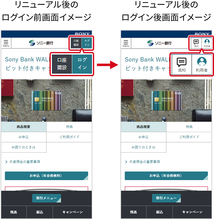 その他変更点や詳細は、「ソニー銀行のサービスリニューアルのお知らせ」をご確認ください。