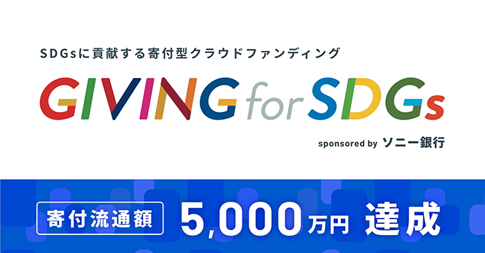 SDGsに貢献する寄付型クラウドファンディング「GIVING for SDGs sponsored by ソニー銀行」支援金5,000万円突破のお知らせ