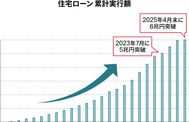 日本銀行の政策金利引上により金融市場動向が大きく変化しているなか、繰上返済を何度でもできる点や繰上返済や金利タイプ変更手数料が無料な点などお借入後のメンテナンス性や利便性、専任の住宅ローンアドバイザーによる充実したサポートを評価いただき、累計実行額が6兆円を突破しました。