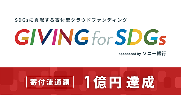 SDGsに貢献する寄付型クラウドファンディング「GIVING for SDGs sponsored by ソニー銀行」総支援額1億円突破のお知らせ