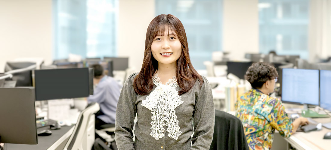 入社後は、研修期間を通して社会人としての基礎をしっかり学ぶことができ、同期との絆も深まり、安心してスタートを切ることができました。実際に2年目でオペレーション・サービス部から異動となり、現在は2部署目で働いています。こうした柔軟なキャリア形成が可能な点は、働く上での大きな利点だと感じています。