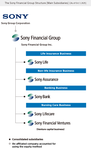 The Sony Financial Group is a financial services group comprising the financial holding company Sony Financial Group Inc. and its subsidiaries including Sony Life Insurance Co., Ltd., Sony Assurance Inc. and Sony Bank Inc.