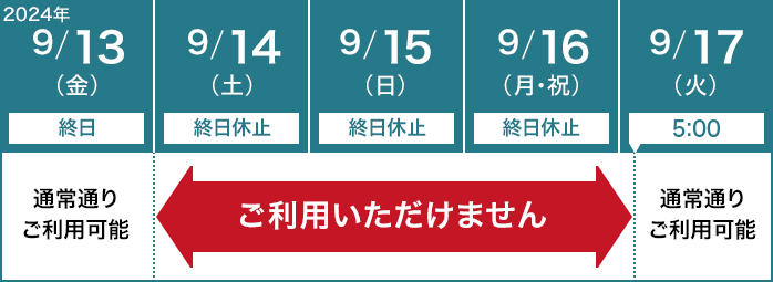 - 2024年9月13日(金)午後5:00~2024年9月17日(火)午前9:00