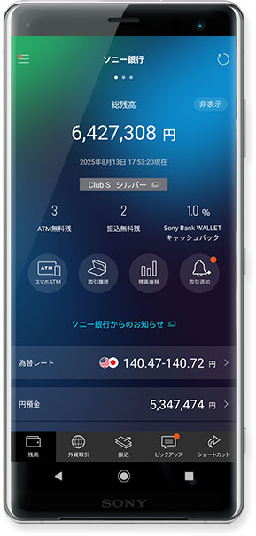 ソニー銀行 アプリは、残高照会や外貨取引・お振込ができるアプリです。