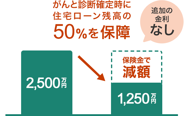 金利上乗せなしで、がんと診断確定時に住宅ローン残高の50%を保障。