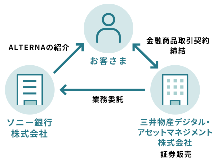 ソニー銀行は、MDMからの委託を受けて、お客さまにALTERNAで提供される金融商品のご案内を行います。