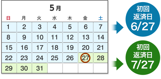 5/27~5/31お借入 → 7/27が初回返済日です。