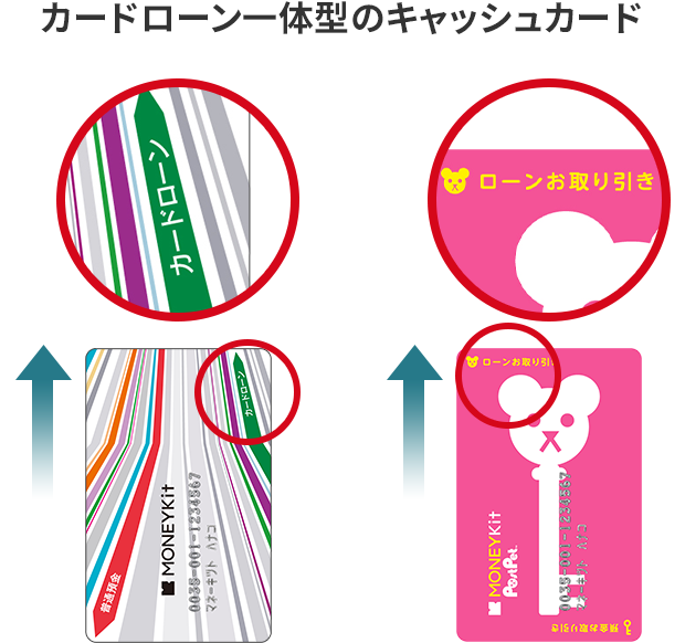 カードローン一体型のキャッシュカードをお持ちのかたは、「カードローン」または「ローンお取り引き」方向でカードを挿入してください。