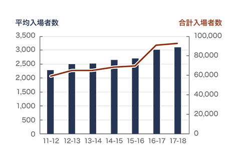 | 平均入場者数 | 3,375 | 2,216 | 2,605 | 3,092 |