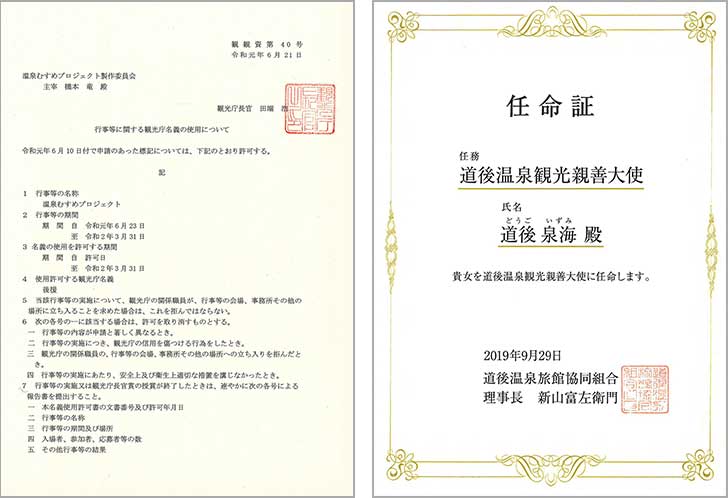 温泉地の観光大使に就任