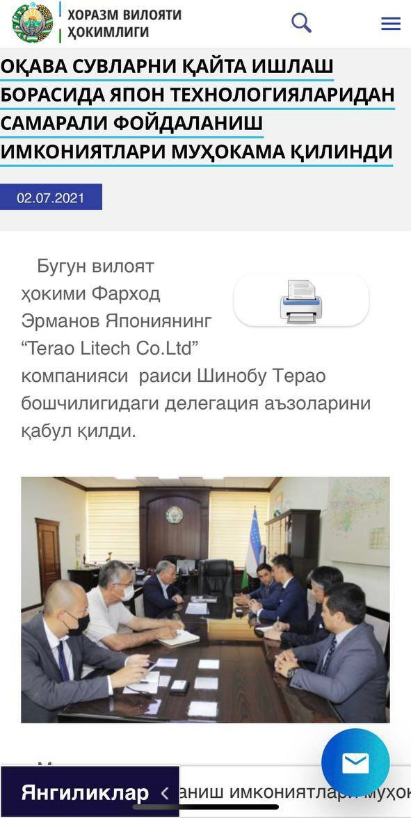 XORAZM州知事との面談はWEBNEWSで報じられました!