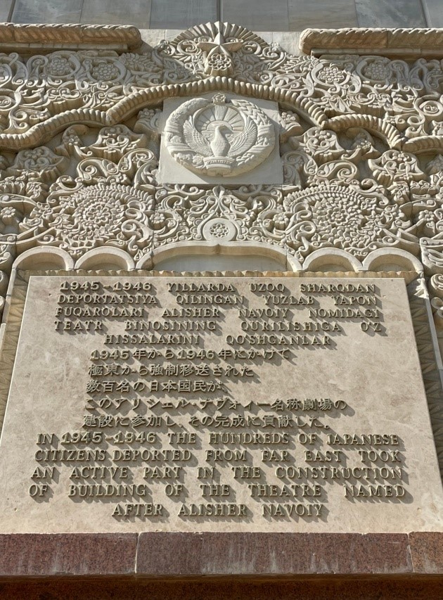 1966年の大地震で首都タシュケントの建物は殆ど崩壊しましたが、ナヴォイ劇場だけびくともしませんでした。 被災者の避難場所として活用されたこの建物を造ったのは、実は日本人なのです。ウズベキスタンはその当時旧ソ連の領土だったため、ロシアに抑留された日本兵捕虜のうち約500人がここに連れてこられ、ナヴォイ劇場の建設に強制労働させられました。(ろくに食べ物を与えられない劣悪な環境の労働は苛酷なもので、500人のうち79人が亡くなっています)しかし、彼らは強制労働であっても一切の手抜きをせず、真剣に責任感を持って建設作業に取り組みました。