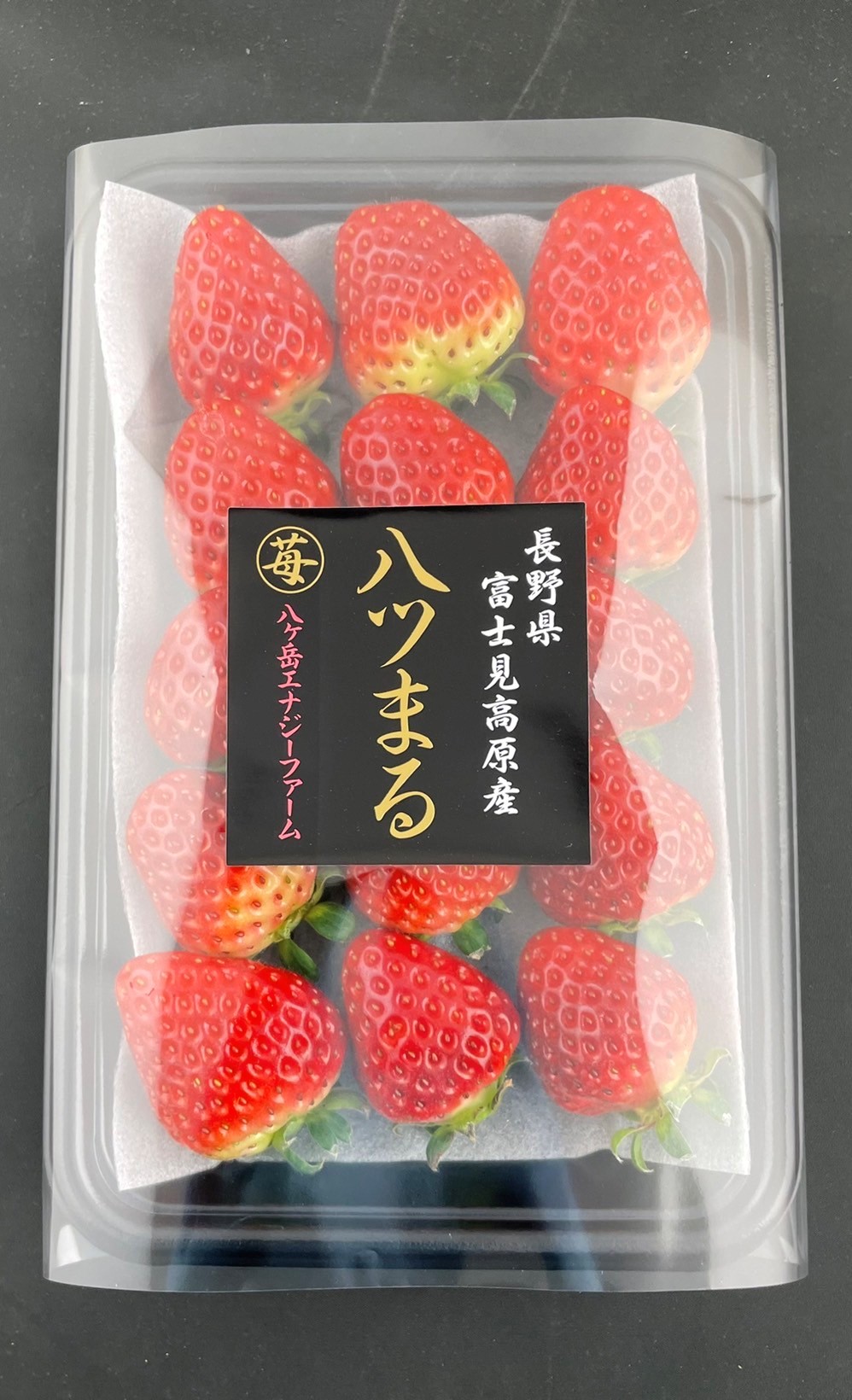 しかし我々栄農人では夏の冷涼な八ヶ岳の気候と新品種『八ツまるいちご』の特性を利用して夏いちごの大規模栽培に成功致しました。『八ツまるいちご』は甘味と酸味のバランスがとても良く、いちご狩りに来られるお客さまからはたいへん好評をいただいております。