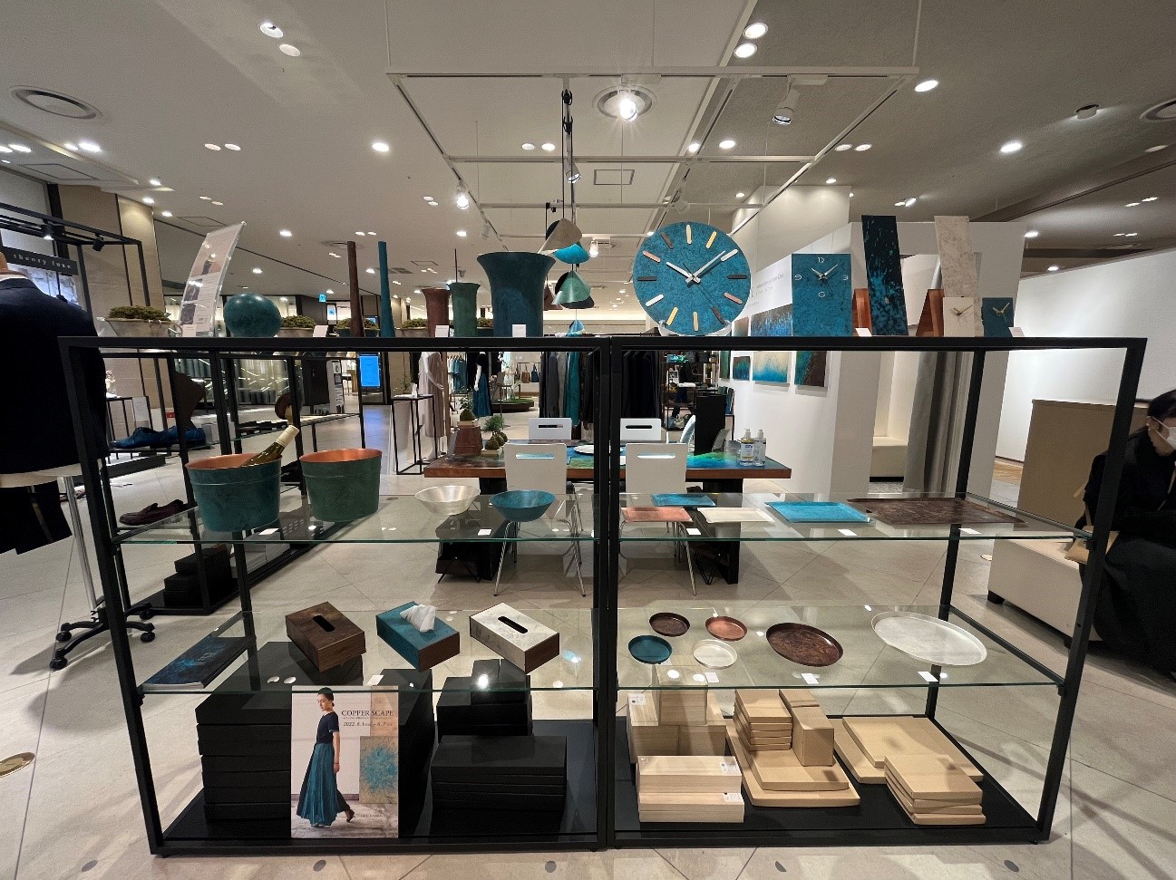 関西方面では初のPOP UPになり、弊社の発色銅板のアイテムやファッション分野への展開を多くの方々に知っていただく良い機会となりました。