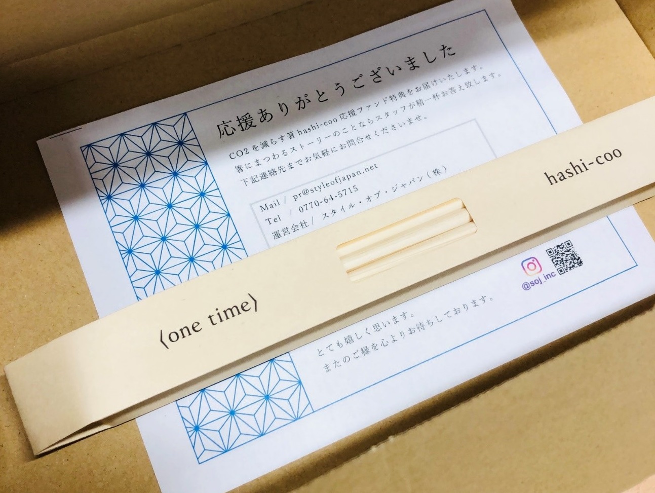 スタイル・オブ・ジャパン株式会社より「CO2を減らす箸 hashi-coo 応援ファンド」について報告がありましたのでお知らせします。