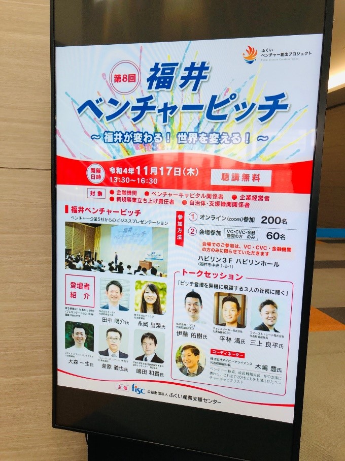 また、先日福井市で開催されました「福井ベンチャーピッチ」に登壇いたしました。