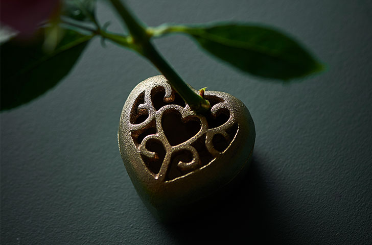 高下氏が開発した商品第1号は「針のない剣山」。生まれ育った金沢の、生け花が盛んな地域性が背中を後押しした。幼い頃から、家のそこかしこに花が飾られていた記憶と、小さい子どもを育てる中でも室内で安全に、かつ気軽に季節を感じたいという気持ちがものづくりの意欲をかき立てた。ふと思い出したのが、「水に10円玉を入れておくと花瓶の花が長持ち」するという、いつの間にか身についていた知恵。「10円玉は銅でできている。銅の抗菌力が使えるかもしれない」という着想を得てからの高下氏の行動は素早かった。デザイナーと試作品をつくり、石川県の農業試験場に「花は本当に長持ちするのか」という共同研究を持ちかけた。結果は成功。水に浸すと、剣山に立てた花は167%以上長持ちするというデータが出た。