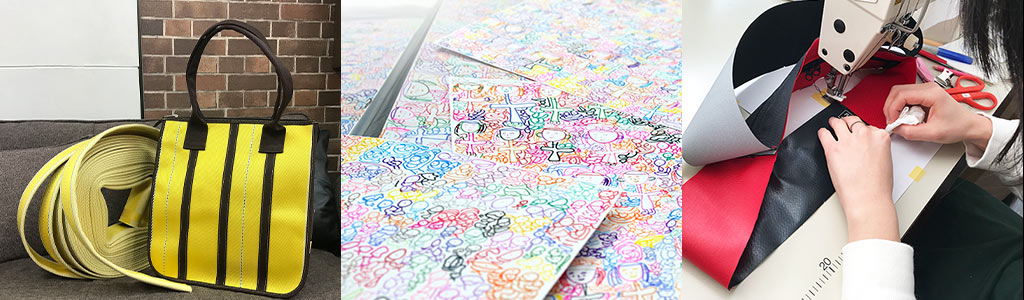 大阪市天王寺区に本社を構えるカバン・袋物の縫製メーカー、サンワード株式会社。1986年の創業以来、OEM生産を中心に事業を展開して着実に成長、2010年にあらたな事業としてネットショップ「joy*bu-ジョイブ-」を立ち上げ、自社ブランド商品の販売をスタート。それを機に、SDGsに特化した個性的な自社企画商品の開発と販売を精力的に展開。人と人とのコミュニケーションを大切にし、未来へ続く環境を考慮したものづくりで誰もが笑顔になれる「つながる商品づくり」を目指して、次のステップへと邁進している注目の企業です。