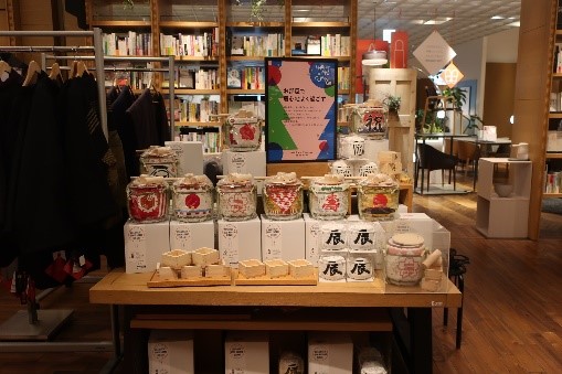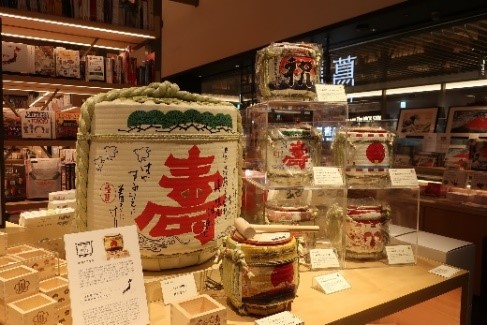 日本では、年末年始の需要が多いのですが、インバウンドでは季節に関係なく、日本らしいデザインが好まれており、フェア終了後も常設で取り扱いいただいております。また、銀座蔦屋書店さまでは、ショーウィンドウディスプレイとしても、菰樽をディスプレイしていただいております。