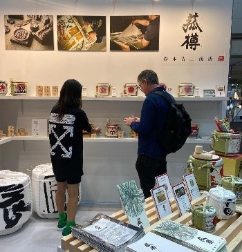 菰樽・ミニ鏡開きセットの新作を展示し、国内外のバイヤーと商談いたしました。