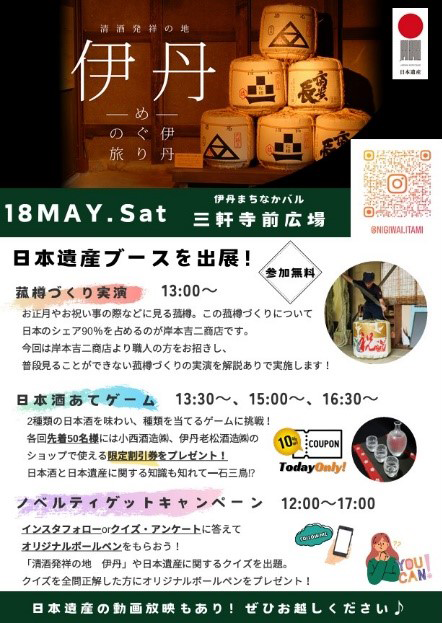 - 5月18日 「第30回伊丹まちなかバル」で菰巻き実演