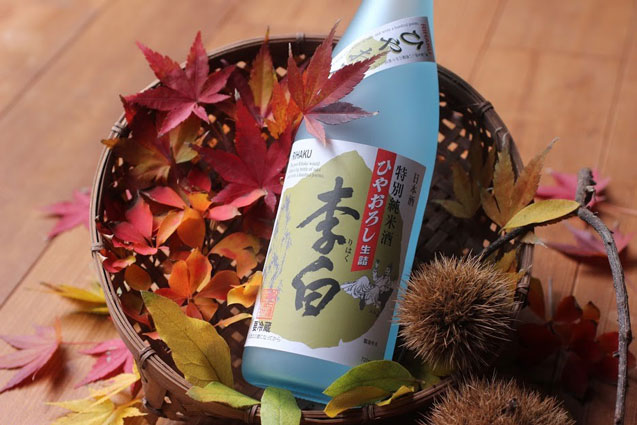 日本酒には四季があります。「ひやおろし」は秋だけに出会える季節限定のお酒。日本酒は通常約1年熟成させてから出荷しますが、この「ひやおろし」は冬に出来た酒を夏の間涼しい蔵の中で熟成させ、秋に出荷(半年熟成)するお酒です。 軽やかな口当たりと、若々しさがほのかに残るほどよい熟成具合が特長です。