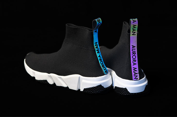 反射材は安全性を担保することが目的であるがゆえ、「見えやすい色」であることが重視とされていた。それに対して『LIGHT FORCE』は自由に色を変えられ、オーロラのようなグラデーションを実現する素材。まさに真逆の発想であり、常識を覆す挑戦でもあった。既存の取引先に販路の拡大を見出せずに苦戦していた中、『LIGHT FORCE』のファッション性に着目したのは国内のアパレルブランドだった。中でも、いち早く『LIGHT FORCE』を取り入れたのが、ファッションデザイナーの森永邦彦氏が設立したアパレルブランド「ANRELAGE」。2016年頃から『LIGHT FORCE』を活用し始め、2021年に開催された「2022SSパリコレクション」にてオーロラリフレクター®を採用し、その大胆なファッションが大きな話題となった。それを機に、『LIGHT FORCE』は多くのアパレルブランドから注目を集め、いくつもの協業が実現。さまざまなメディアにも取り上げられるようになったという。