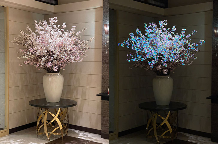 昨年、北陸新幹線の福井・敦賀開業PRとして、福井県内のJR主要5駅にオーロラリフレクター®を使用した大型パネルが設置されるなど、アパレル分野以外にも『LIGHT FORCE』の活用が広がっている。また、舞台装置などを作る美術制作会社とのコラボレーションにより、造花とは次元の違うクオリティを実現する「アーティシャルフラワー」の製造販売も予定されているなど、『LIGHT FORCE』の可能性は拡大する一方。そんな同社が描く未来は海外進出だという。