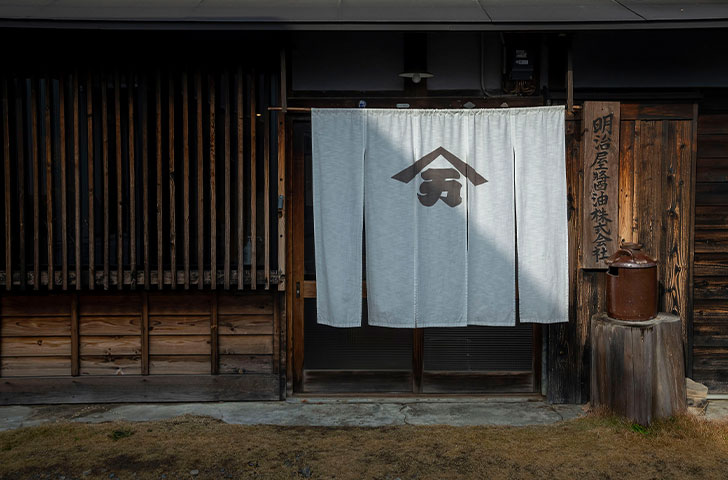 古くから大豆や小麦の栽培が行われていたこともあり、かつては醤油づくりが盛んだった静岡県浜松市の小松地区にて、約150年に亘り天然醸造にこだわった醤油を醸し続けている明治屋醤油株式会社。古き良き日本の面影を残した同社の店舗兼主屋、醸造所、離れの3軒は、2016年に国の登録有形文化財に指定されている。