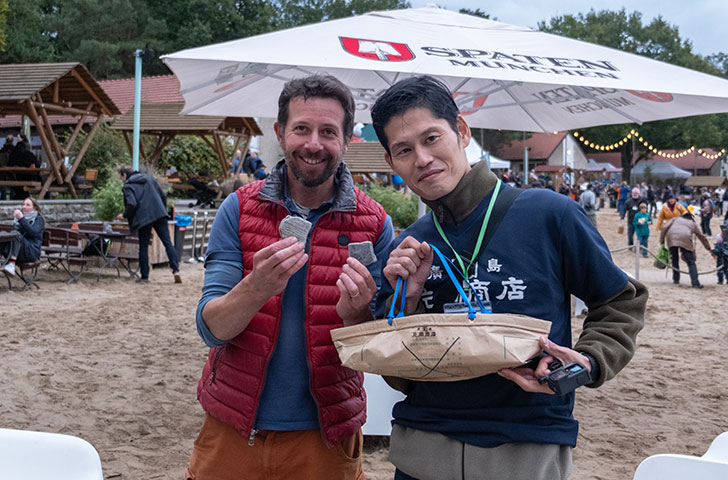 また、勧氏の趣味が反映されたユニークな商品が、印刷不良で廃棄される米袋を再利用した「水切り石バッグ」。このバッグは、今年ドイツで開催された「第1回国際水切りトーナメント大会」の賞品に採用されたことで、海外からの問い合わせもあるという。