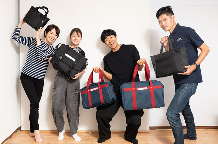「弊社の強みは何なのかを考えていて生まれたのが『(ヤンチャな)中学生に3年シゴかれても壊れない』というキャッチフレーズのスクールバッグなのですが、やはり耐久性が一番大きな製品価値であり企業価値だと思っています。そこを軸に学校用だけではなく、一般消費者であったり、あるいは建設や土木の現場で使っていただけるような工具入れバッグであるとか、これまでとは違う市場でのインフラに携わる商品開発を展開できればと考えています。社長の信念である『お客さまに寄り添う商品づくり』は維持しつつ、中長期的に成立するビジネスや商流を作ることが5代目である自分に課せられた使命であると思っています。ただ、私自身は、単純に物をつくって売るのではなく、『面白い』ということを重要視しているんですね。米袋を活用した『水切り石バッグ』もそうですが、将来的には『面白い』という価値観のもと集ったメンバーと一緒に、ユニークなインフラ商品を作って販売することを実現できればと考えています。」