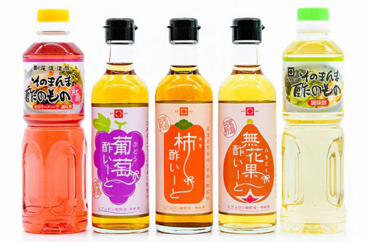 同社の特徴のひとつが、調味酢・ぽん酢、醸造酢、飲む酢、ギフト、業務用品といった豊富な商品ラインアップ。その中でも、1990年から発売されている調味酢「そのまんま酢のもの」シリーズは、口コミだけで全国に広まったロングセラー商品であり、現在も同社を代表する商品となっています。
