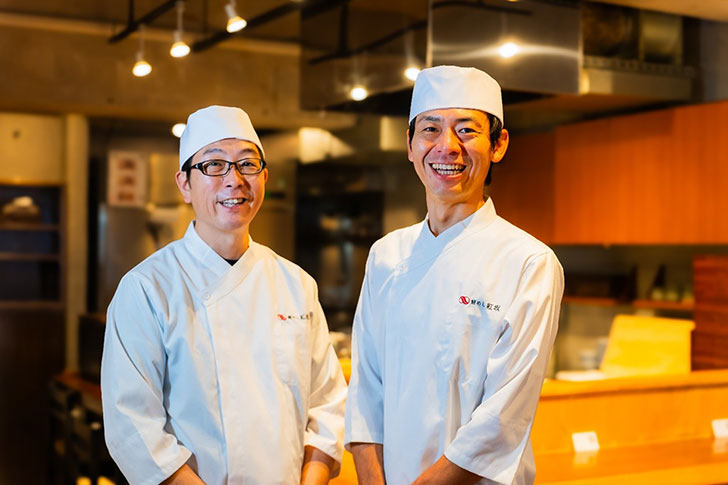 写真:右から 赤坂水産有限会社・赤坂竜太郎、「鯛めし紅坂」総大将・宇都宮大輔(愛媛県「寿司和泉屋」店主)