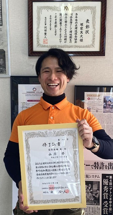 先日、弊社の29歳の若手社員が、難関国家資格である「浄化槽管理士」の免許を取得いたしました。