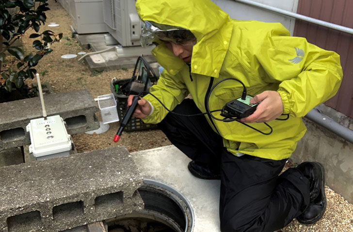 世界初となる自動測定センサーを駆使し、浄化槽の遠隔監視システムの開発に挑む