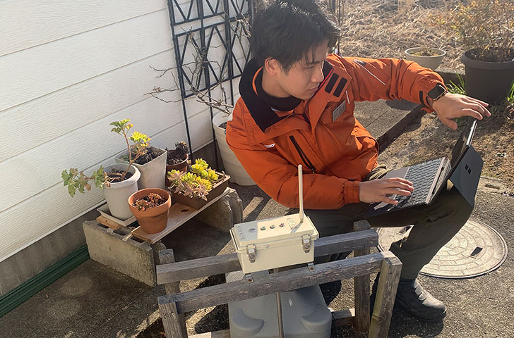 「センサーに関しては、大阪大学発のスタートアップである株式会社地球観測との共同研究で開発に成功し、世界初(*)のセンサーとして特許も取得しました。ただ、そこに至るまでが大変でした。まず、浄化槽の遠隔監視を開発することが、業界が抱える深刻な人手不足問題や働き方改革だけではなく、近い将来起きると考えられている国内の水インフラ問題の解決法であると結論づけました。しかし、遠隔監視を行うには連続使用できるセンサーが存在しないという大きな壁にぶち当たってしまったのです。そこからは、あらゆる人伝を頼って助けを求め、たどり着いたのが株式会社地球観測でした。結果として、無数の失敗と試作を繰り返し、4年がかりで世界初(*)のセンサーの開発に成功しました。」