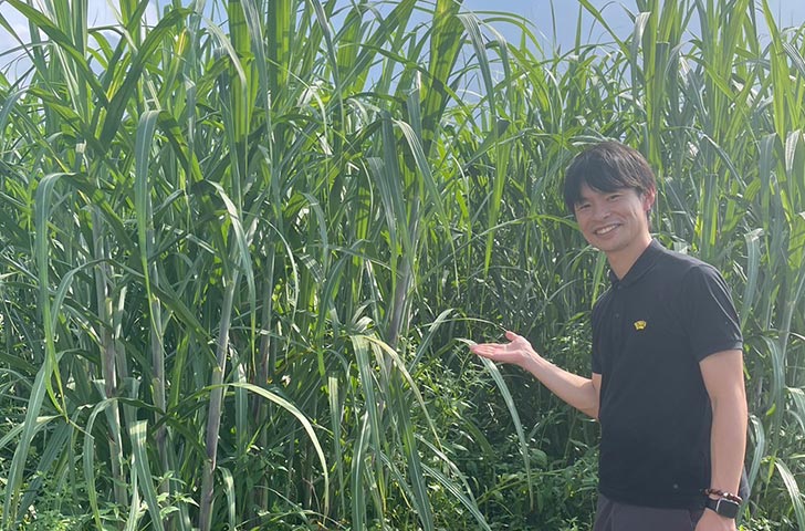 「以前、香川県庁から飴を県産品コンクールに出品しないかと連絡を受けたのですが、飴の主原料である砂糖が県外のものであるため出品できなくなってしまいました。そのときに『これでは本当の意味で香川県のお土産とはいえない』と悔しい思いがありました。もともと香川県にはサトウキビ畑がたくさんあったらしいのです。だから、和三盆や砂糖菓子も多く作られるようになったのではないかと。おそらく五人百姓の飴も先祖たちは香川産の砂糖で作っていたと思うのです。そこで、県庁の担当者に県内でサトウキビ畑をやっている農家さんを調べていただき、東かがわ市に数軒あることがわかりました。そこで、サトウキビの栽培から、収穫したサトウキビを煮詰めて黒糖化するまでの作業を行っている農家さんに会いに行ったのです。年配の男性がほぼひとりでやられており、私の思いを伝えたところ喜んではくださったのですが、すでに契約されている会社があり、新しいところに卸すだけの余力がないと。それでも諦めきれず、県庁と市の担当者に、これからサトウキビの栽培を始めるあらたなチャレンジャーが現れたら教えてほしいと伝えて帰りました。それから2年が経った頃、その担当者から『あらたなチャレンジャーが現れました。』と連絡を受けたのです。すべてのスケジュールをキャンセルして、すぐに会いに行きました。私よりひとつ年下の新規就農の男性でした。そこでも私の思いを伝えたところ『わかりました。』と承諾いただいたのですが、実はそのかたは2年前にお会いしたサトウキビ農家の男性の息子さんだったのです。父親が高齢になったため家業の農家を継ごうと考え、あらたに自分でサトウキビ畑を始めたということでした。」