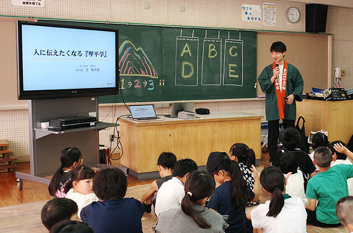 「就職や進学で県外や市外に出ていく若者が多く集まる中、琴平町に魅力を感じて好きになってもらう最後のチャンスだと考え、若手職員プロジェクトチームを結成して、毎回15分ほどのプレゼンテーションを行っていました。うれしいことに、そのプレゼンテーションを聴いたことをきっかけに琴平町役場の職員になってくれた男性もいるんですよ。」