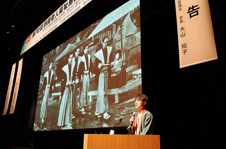 江戸時代、「一生に一度は、こんぴら参り」といわれていたが、池社長は「人生で何度でも訪れたくなる町へ」をコンセプトに、店舗では「人に伝えたくなる琴平学」を開講。さらには町内の学校での講演、全国各地での旅行説明会や香川県のPRイベントなど幅広いフィールドで精力的に活動している。その原点となったのは、琴平町役場の職員時代に成人式の式典で行っていたスピーチだという。